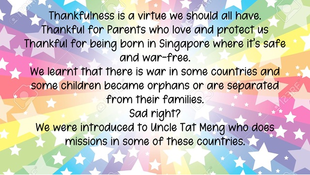 Our teachers connected with Uncle Tat Ming as he volunteers frequently with a team to help out kids in third world countries like Vietnam , Myanmar etc.