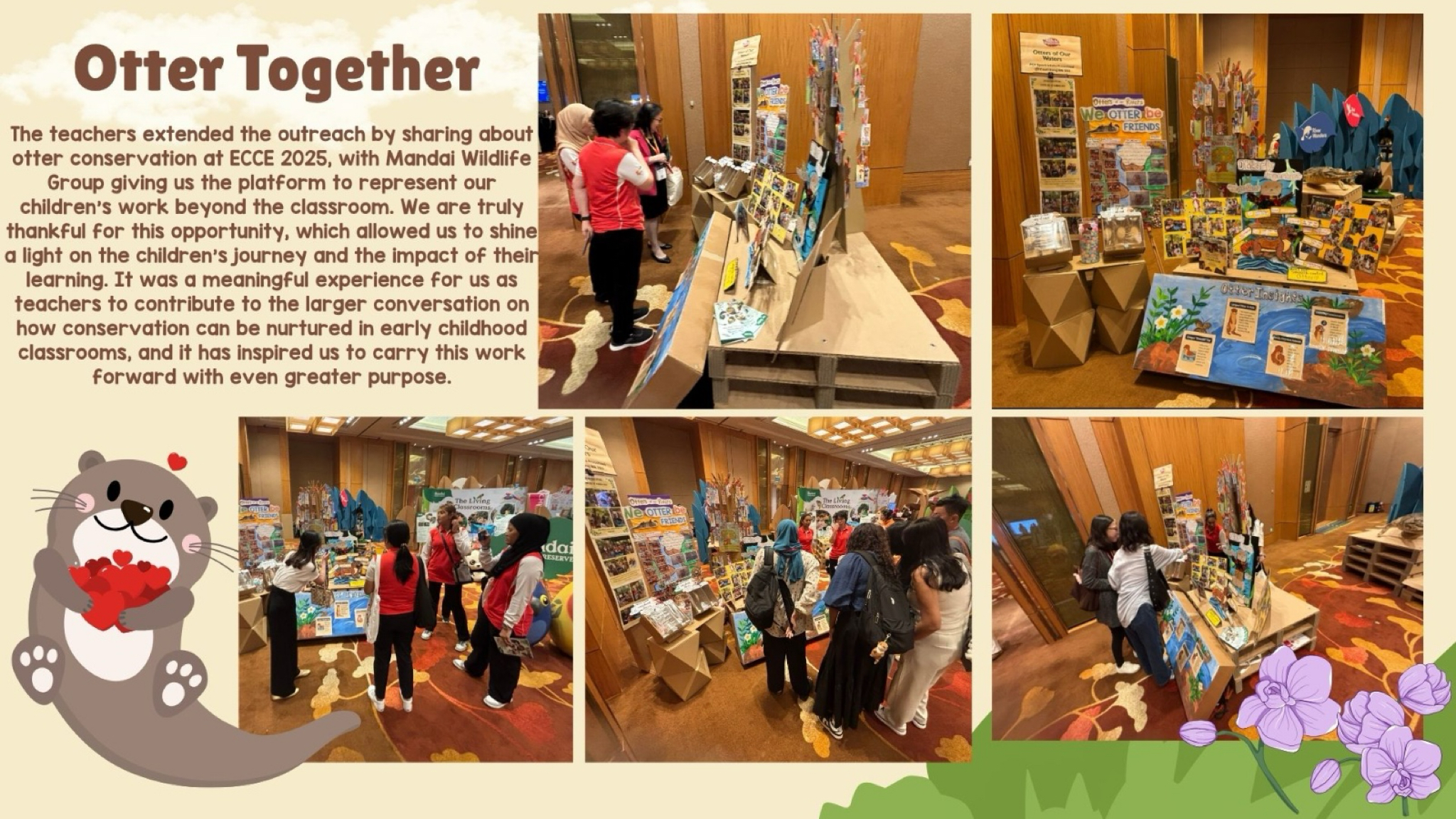 Our SSDB journey this year was done in partnership with Mandai Wildlife Group, and we chose the smooth-coated otter as our focus. The children collected recyclables and turned them into posters, art pieces and even musical instruments to share their ideas about saving wildlife. They also enjoyed stories, hands-on activities and a trip to the zoo, where they made real connections about how our actions can help or hurt animals. The journey came together at the Wild-erful Singapore exhibition, where the children proudly shared their learning with the public through displays and fun activities. Teachers later extended the outreach by sharing this project at ECCE 2025, showing how even young children can take action for conservation. This experience gave the children confidence, teamwork, and a stronger voice in speaking up for the otters.