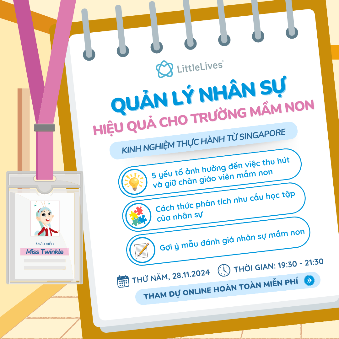 On November 28th, LittleLives Vietnam hosted a special webinar, "Mastering Staff Management for Preschools – Singaporean Best Practices". This insightful session provided valuable knowledge and practical solutions for preschool administrators seeking to effectively manage and develop their staff. Participants gained access to cutting-edge strategies and real-world examples from Singapore, empowering them to create a thriving and motivated team.